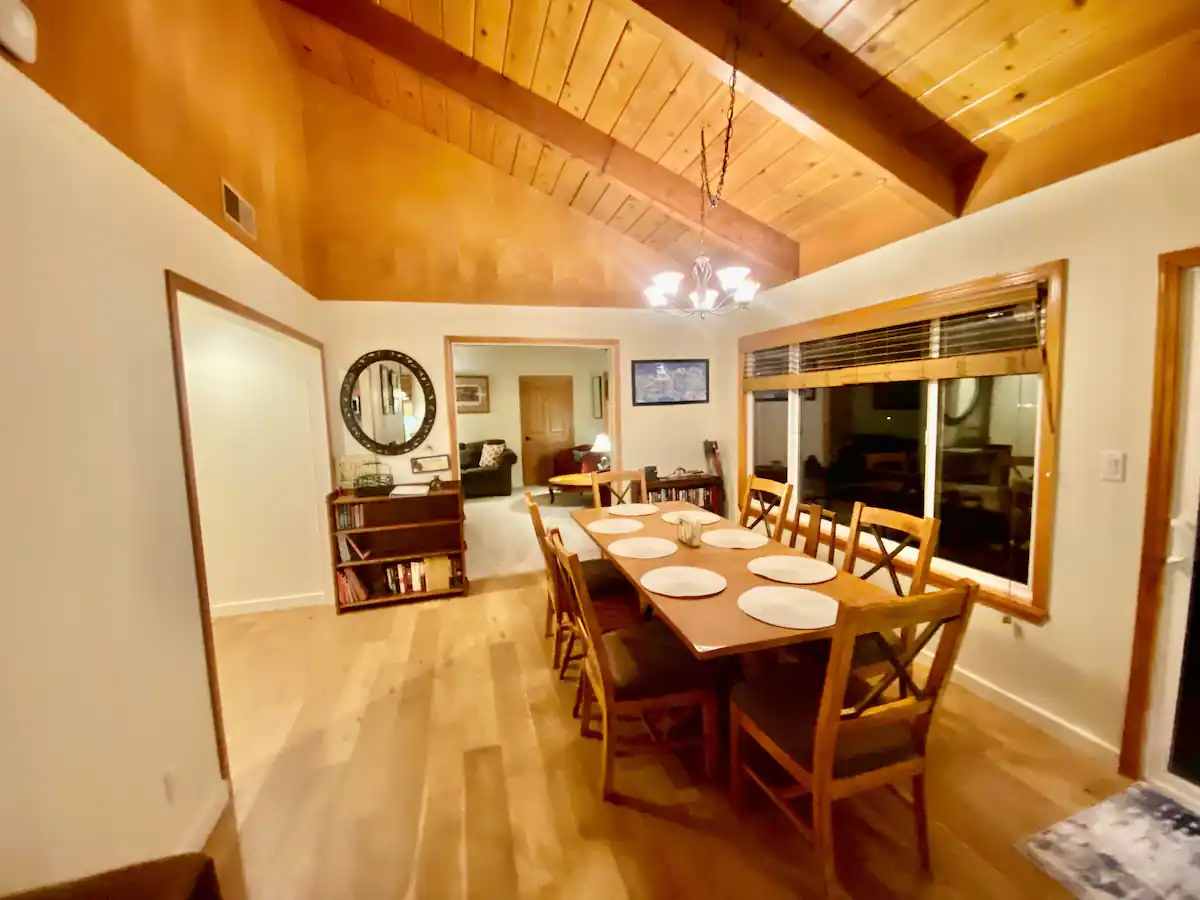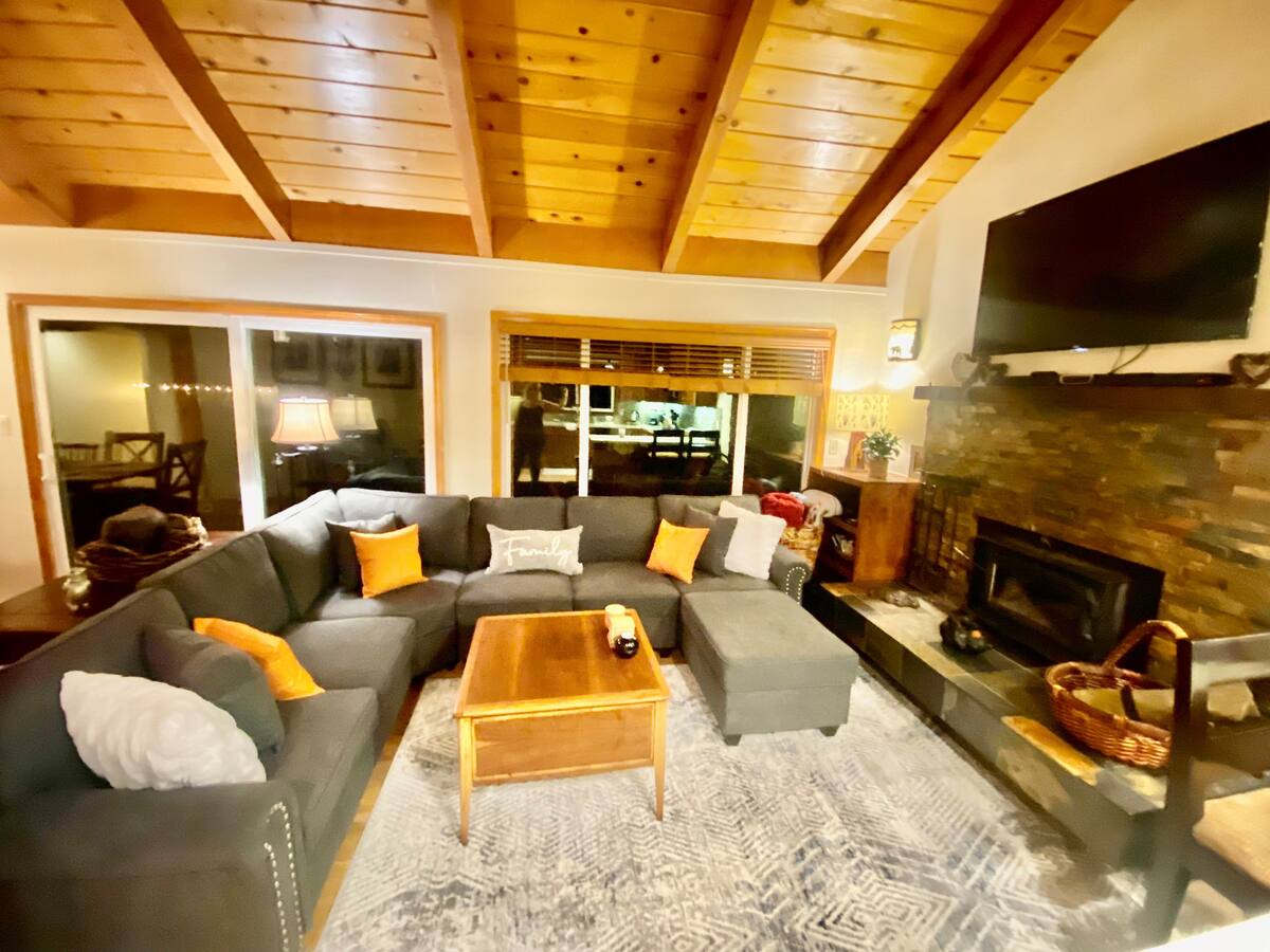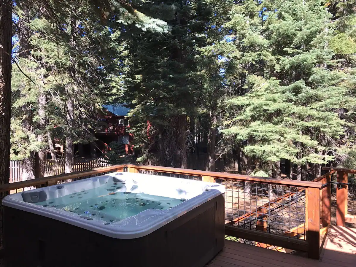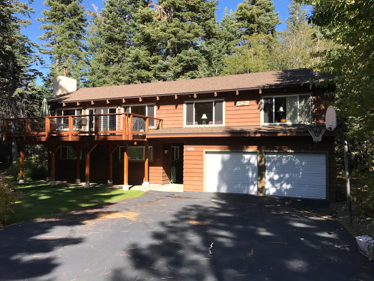 Spacious family vacation rental with several different areas for games, fun, and simultaneous relaxing! The property is just a 5 minute walk from the lake - appropriate for children and adults alike. The property has 5 bedrooms, (1 california king, 2 king doubles, 2 doubles, and 2 bunk beds in the final room - sleeping a total of 12 - without utilising any couch space!) 3 good size bathrooms serve the bedrooms well. The property boasts 2 separate lounge areas with comfortable couches seating up to 11 at any one time. The front lounge has a 50" flat screen TV and a stunning iron clad wood burning fireplace, fire wood is provided. Dinner time is a shared enjoyable occasion with a formal dining table that seats 8. The kitchen has just been remodelled and features a breakfast bar that seats 4, caesar stone work surfaces and high end integrated appliances including a dishwasher, large oven, microwave, refrigerator and freezer. The beautiful lake house has large balconies and yards, both front and back! The front balcony has a large propane gas BBQ and 2 outside dinning facilities that seats 6. The rear deck has a state of the art hot tub nestled into the majestic Tahoe pine trees, the hot tub has several settings which include coloured lighting, water cascades, and an integrated, bluetooth connected music system. Finally the local shuttle has a stop directly outside the house to chauffeur you and your family to the private beach chambers landing which has a private heated swimming pool, tennis courts, lake side restaurant dinning and a unique popular bar on the private pier. The property is fully serviced by wifi. Lake Tahoe is known for it's stunning scenery and defined seasons. Each season offer's it's very own experience, swim in the lake during summer and ski the mountains in winter! Book this stunning lake house for relaxed family fun in a home from home.